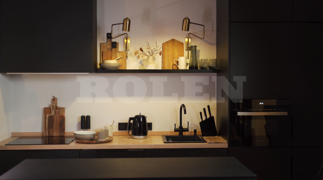 «Чёрное сияние» — выбор тех, кто ценит функциональность. Широкие полки и ящики обеспечивают достаточно места для посуды и продуктов. Интегрированные системы хранения помогут поддерживать порядок.