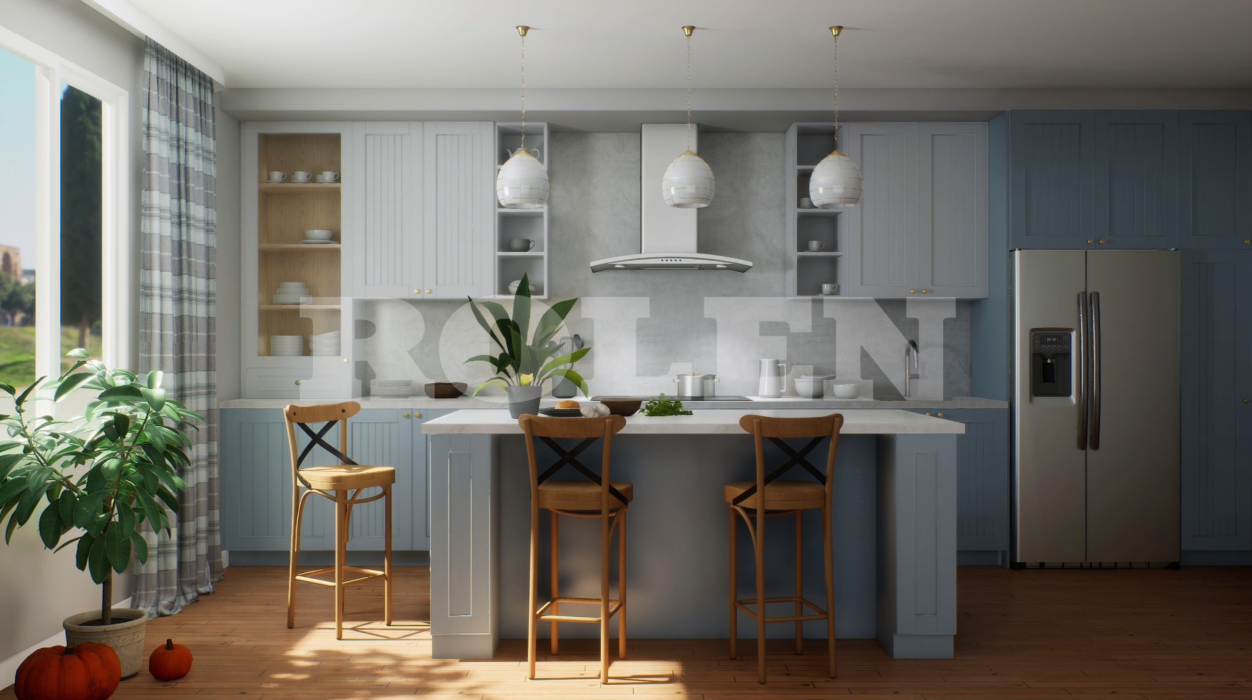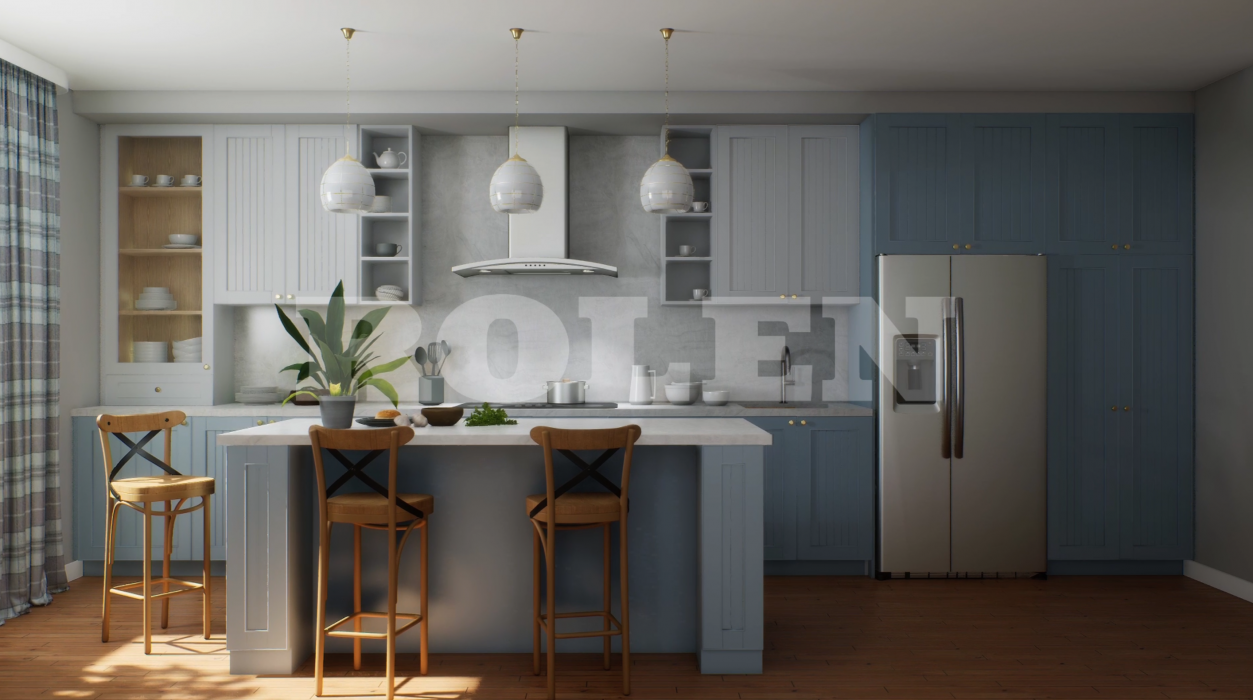 Дизайн кухни вдохновлён просторами гавани. Натуральные материалы сочетаются с мягкими оттенками белого и светло-синего. Вместе они создают ощущение свежести и гармонии с природой.